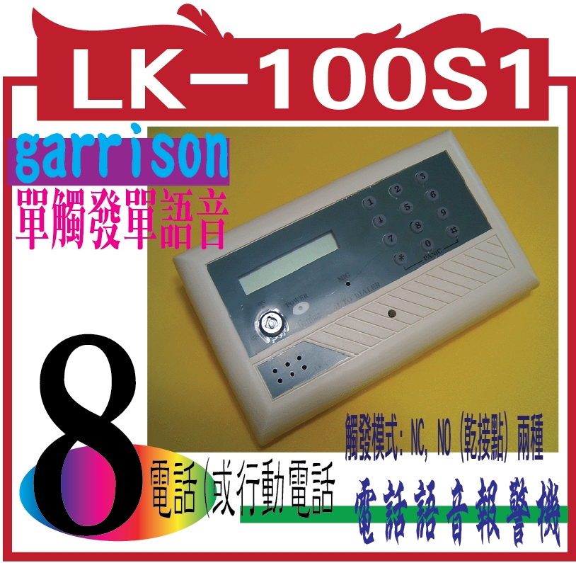 LK-100S1-DC-12V 43968加碼送【專用變壓器LK-100S1 DC12V】LK-100S1-DC-12V 電話語音報警機 DIY式,簡單易裝公司、居家安全、保護老人、小孩之最佳利器 可與其他產品結合提高附加價值(例如抽水站水位警告.土石流預警..........) 3,368