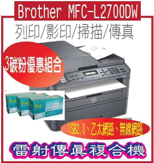 Brother MFC-L2700DW-3POWER 67118加碼送【Brother MFC-L2700DW+3碳粉優惠組合】Brother MFC-L2700DW-3POWER / MFC L2700DW 高速雙面多功能雷射傳真複合機
