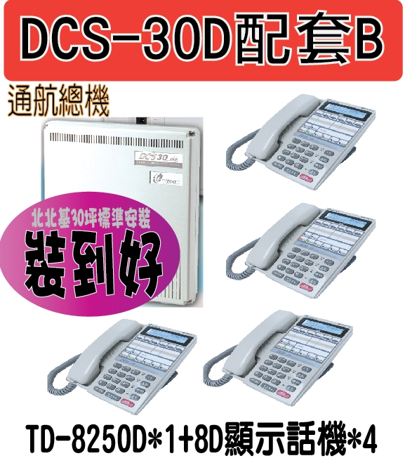 | DCS-30D配套B北北基含安裝30坪内 | 64695 | DCS-30D配套B北北基含安裝30坪内 TD-8250D*1+8D顯示話機*4 | |  | | 860 | 1024家廠商 |