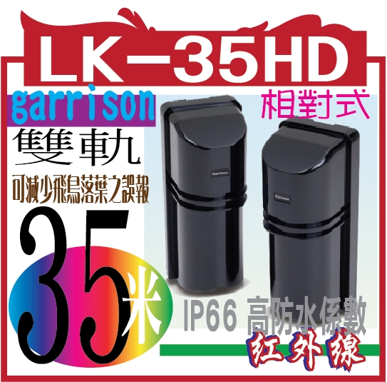 | LK-35HD | 25045 | Garrison LK-35HD(室外35m)雙軌相對式紅外線偵測器 | | 2,939 | | 2655 | 0家優良廠商出貨 |