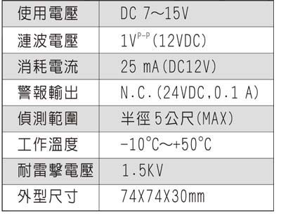 * 雙重鑑別聲音偵測,高靈敏度、低誤報率。 * 告警記憶 (ALARM MEMORY)