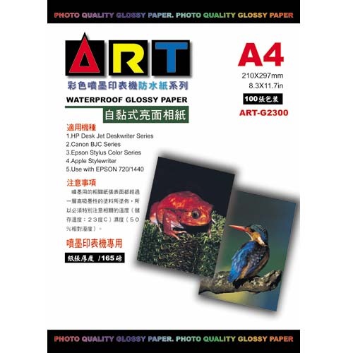 ART 自黏式噴墨用紙系列 ( 720~5760DPI ) (日系) ART-G2300 自黏式防水亮面相紙 A4 / 130 磅 100 張 / 包