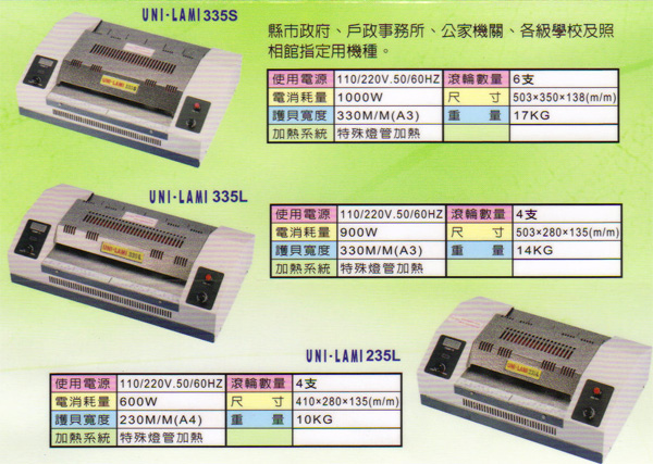 專案限量UNI-LAMI 威力牌 頂級 護貝機 UNILAMI-235L 4支滾筒2支加熱(韓國機)