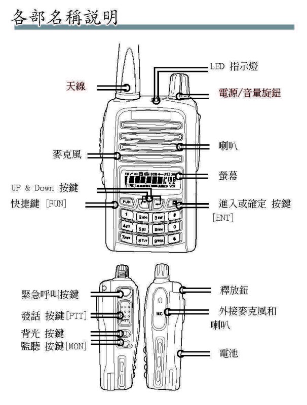 輸出功率:5W/1W 包含: 主機、天線、電池、