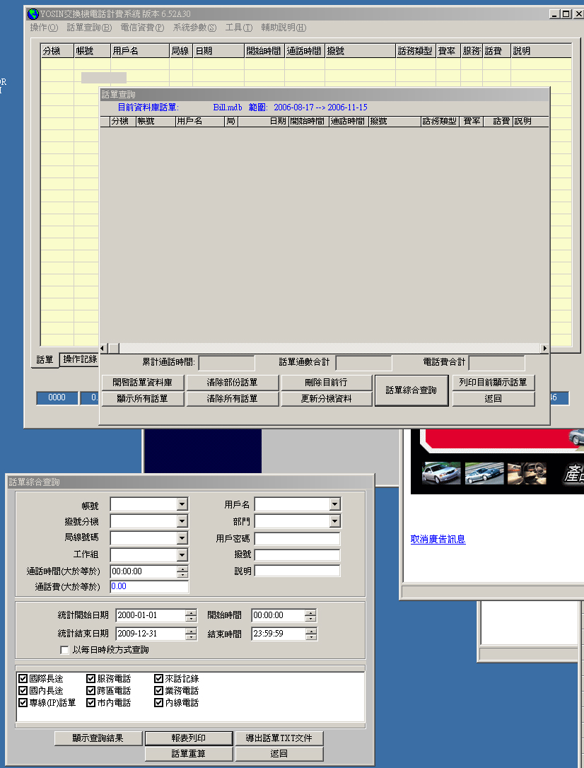 支援區域網路操作,可以做話單設定與話單資料查詢。