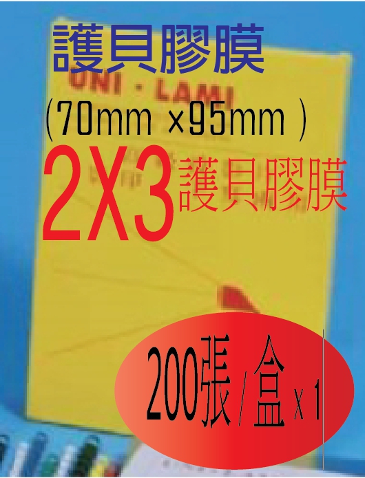 護貝膠膜-->名片護貝膠膜 2X3 60mm ×95mm商品查詢代碼:QK524