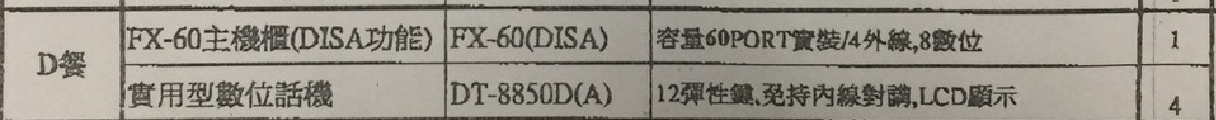 型號:D餐FX-60(DISA)+4台DT-8850D(A)顯示型話機