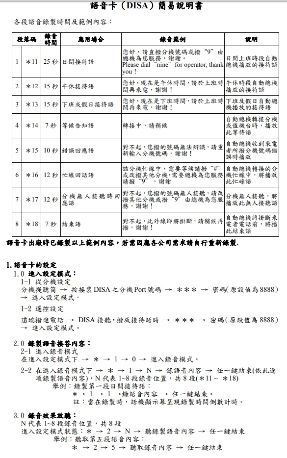 型號:ISDK2-DISA 語 音 自 動 總 機