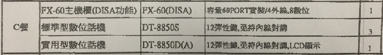 型號:C餐萬國總機系統FX-60(DISA)+1台DT-8850D(A)12鍵顯示型話機 +3台DT-8850S12鍵標準型話機 內建 120 秒自動總機萬國總機系統
