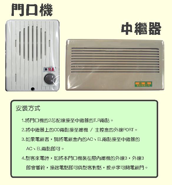 戶外拉線-->中繼器+門口機 佶泰電訊 台灣製造 可開電鎖 陰極鎖 陽極鎖 也有不開電鎖型商品查詢代碼:QK62951
