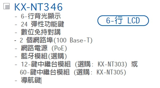 TDA100/200/600-->KX-NT346商品查詢代碼:QK63325