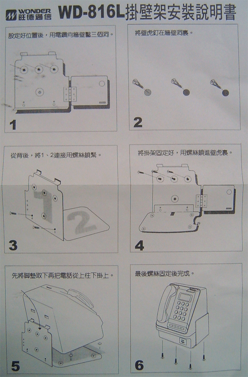 : 投幣式電話機-->WD-836L璧掛架商品查詢代碼:QK6495