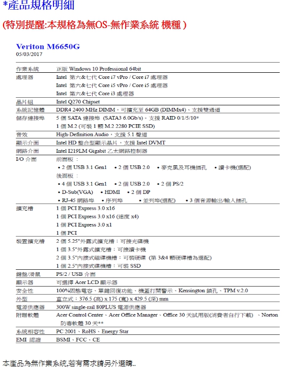 (特別提醒:本規格為無OS-無作業系統 機種 )