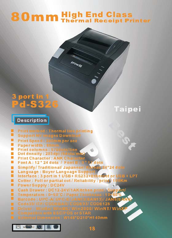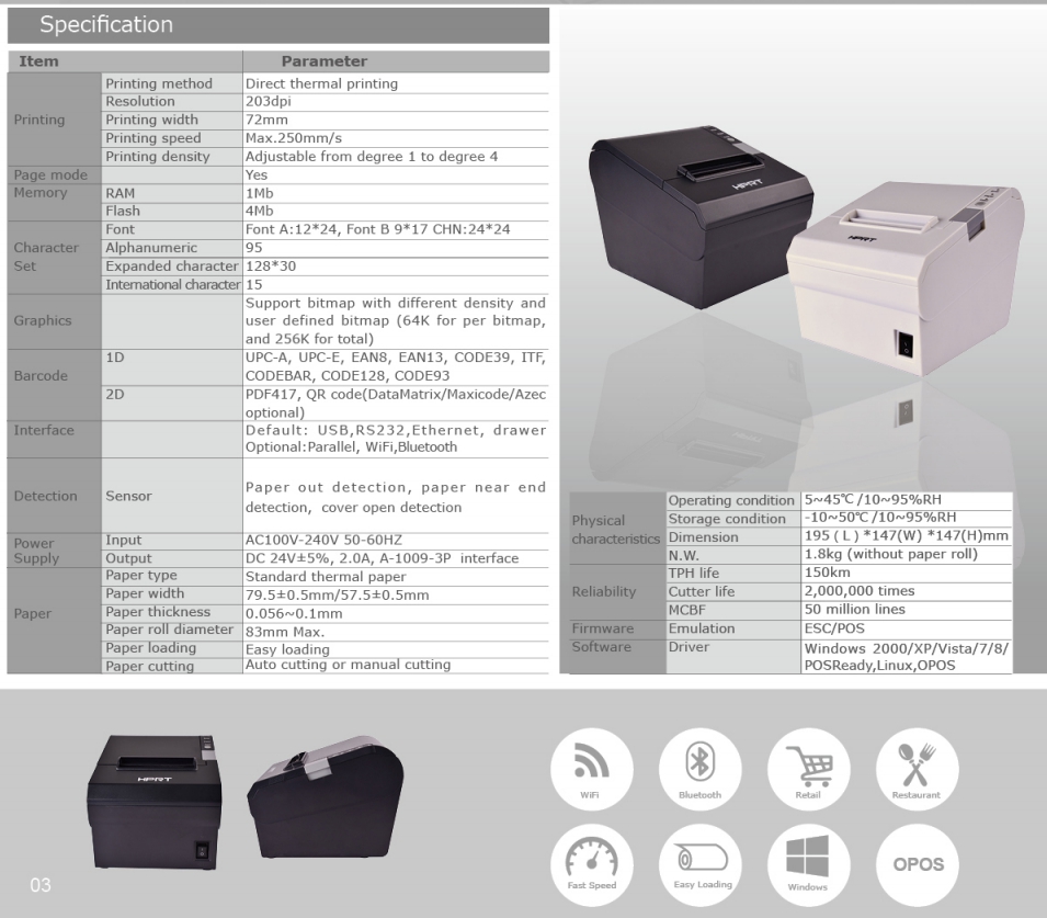 ●超強兼容性能,標配三合一通訊接口,適應不同場合打印要求