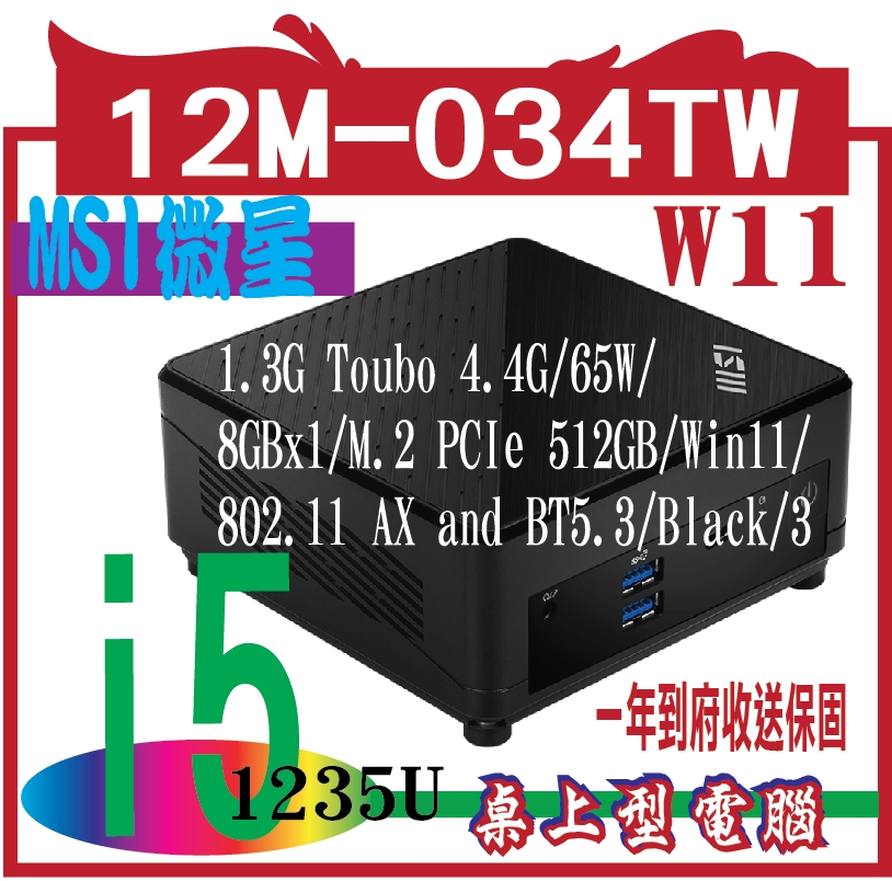 桌上型電腦-->MSI微星 Cubi 5 12M-010BTW i7 準系統 ( Cubi 5 12M-010BTW-B71255UXX )商品查詢代碼:QK82816