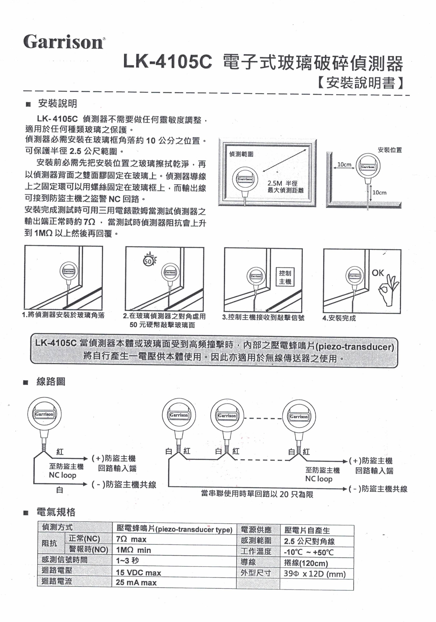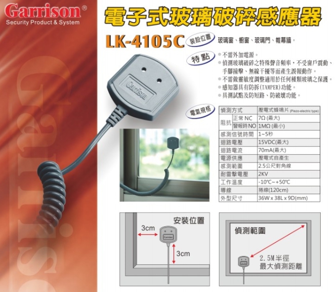 玻璃破碎偵測器-->LK-4105C商品查詢代碼:QK12607