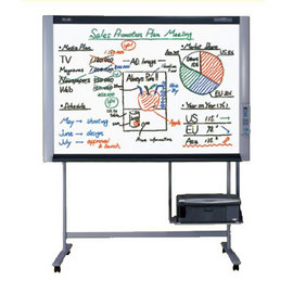 配合辦公環境,可選擇將電子白板掛於牆壁上或使用腳架,適用於任何辦公空間。版面可黏貼大型圖表,設計圖,還可透過白板直接影印成A4大小的資料,或連接PC介面或雷射印表機加以應用,以便保留。版面種類多,創新四面迴轉式、加寬型、標準型、攜帶型,方便會議時靈活運用。面板指示簡單易懂,操作容易,輕輕一按即可。
