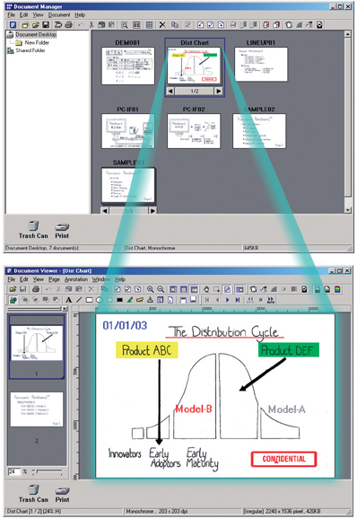 隨機附有工具軟體,其中包括文件管理員以及文件檢視器,讓寫在電子白板上的會議資料能透過文件檢視器的功能將文件轉成電子檔案,並且可以輕鬆的加上註解,而文件管理員則能簡單的做好文件管理,將文件輕鬆的發送出去,支援格式包含BMP、TIFF、PNG、和PDF檔案。