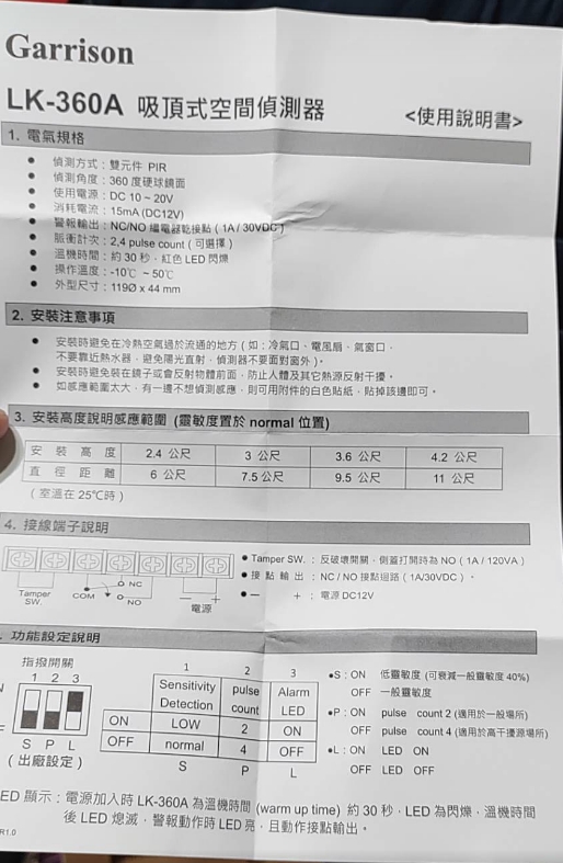 專案限量LK-360A吸項式空間偵測器 Garrison防盜器材