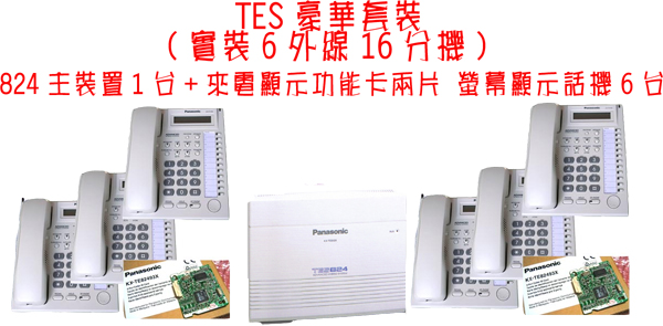 KX-TES03 TES824豪華套裝 824主裝置1台(實裝6外線16分機)+308擴充卡一片(KX-TE882483)來電顯示功能卡一片 螢幕顯示話機6台