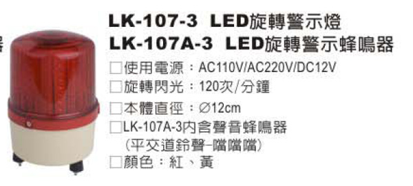 旋轉警示燈-->LK-107-3 LED 旋轉警示燈商品查詢代碼:QK38092