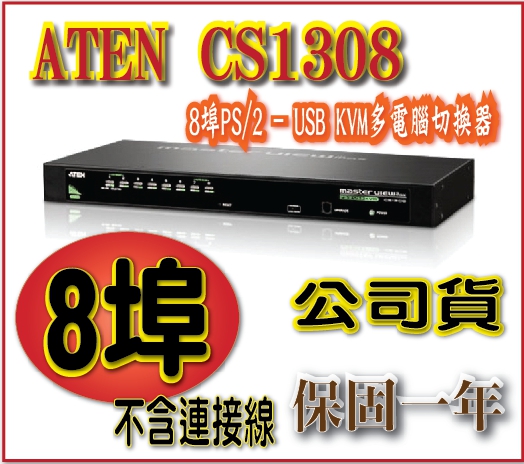 專案限量ATEN CS1308 8埠PS/2-USB KVM多電腦切換器 (不含連接線 需另行加購)