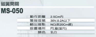 磁簧開關-->MS-050商品查詢代碼:QK42354