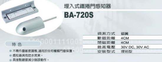 : 磁簧開關-->BA-720S 鐵捲門感知器商品查詢代碼:QK42355