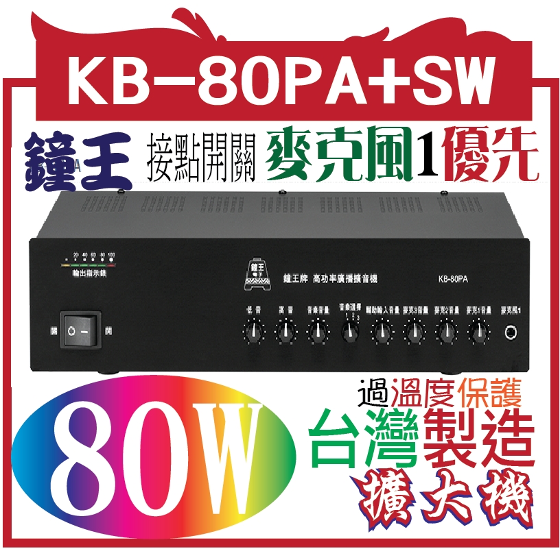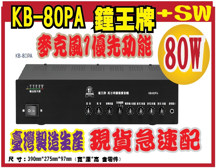 專案限量KB-80PA+SW ---鐘王牌 KB-80PA廣播專用高功率擴音機 接點開機