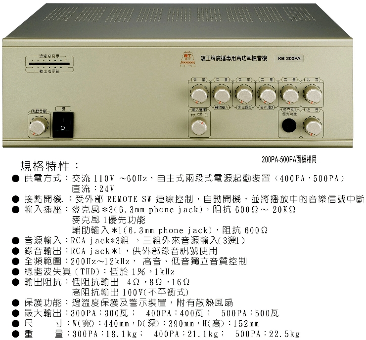 KB-300PA特色:
