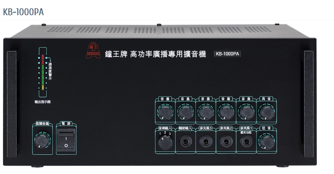KB-1000PA 鐘王牌 廣播專用高功率擴音機特色: