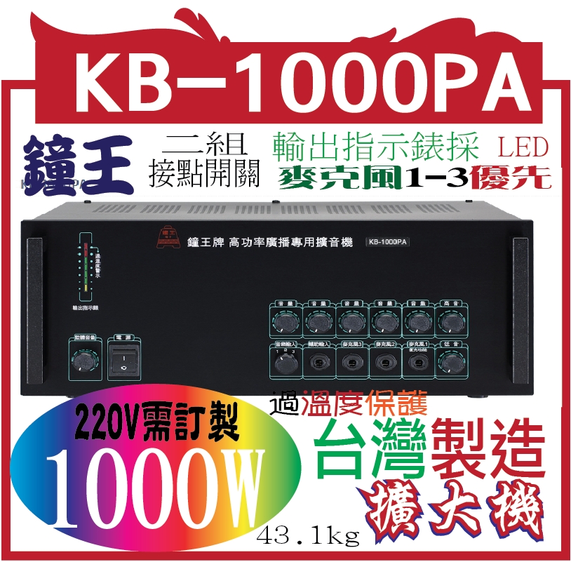 專案限量KB-1000PA 鐘王牌 廣播專用高功率擴音機