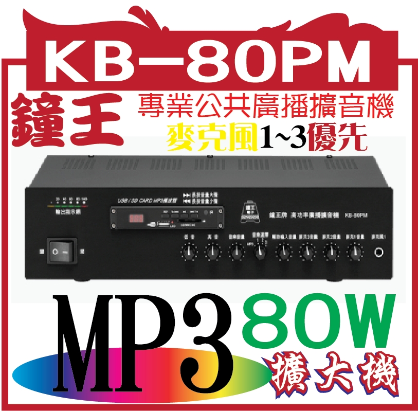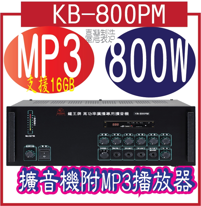 專案限量KB-1000PM 鐘王1000W擴音機+MP3()適用範圍:適合村里、社區、大樓、工廠、大型賣場、競選宣傳車等