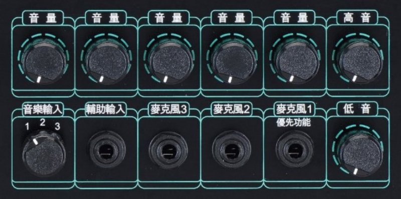 麥克風*3(6.3mm phone jack),阻抗 600Ω∼ 20KΩ,麥克風1優先功能