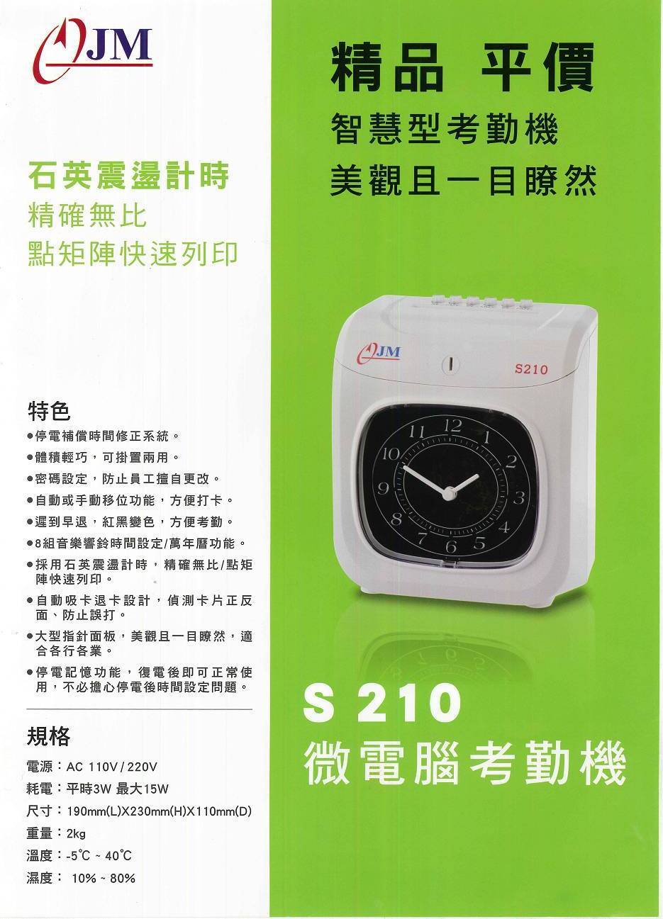 JM打卡鐘-->JM S-210商品查詢代碼:QK45629
