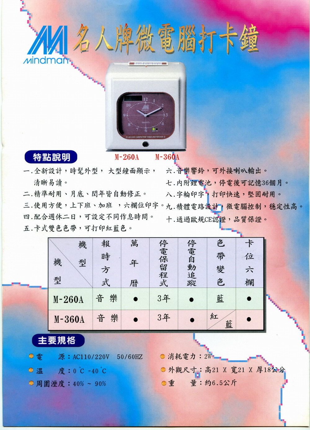 Mindman打卡鐘-->M-260A商品查詢代碼:QK46250