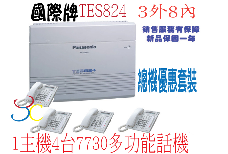 | 專案限量國際牌電話總機TES-824主機+4台7730顯示話機,附來電顯示 | ||||||||||||||