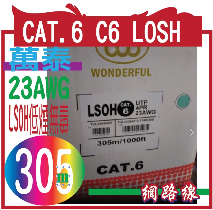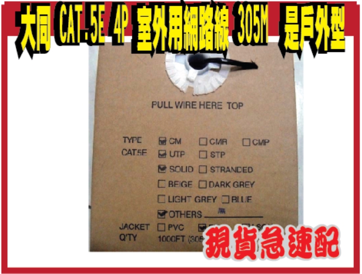 網路線-->大同 CAT.6* 4P 灰色 網路線305M 商品查詢代碼:QK48995