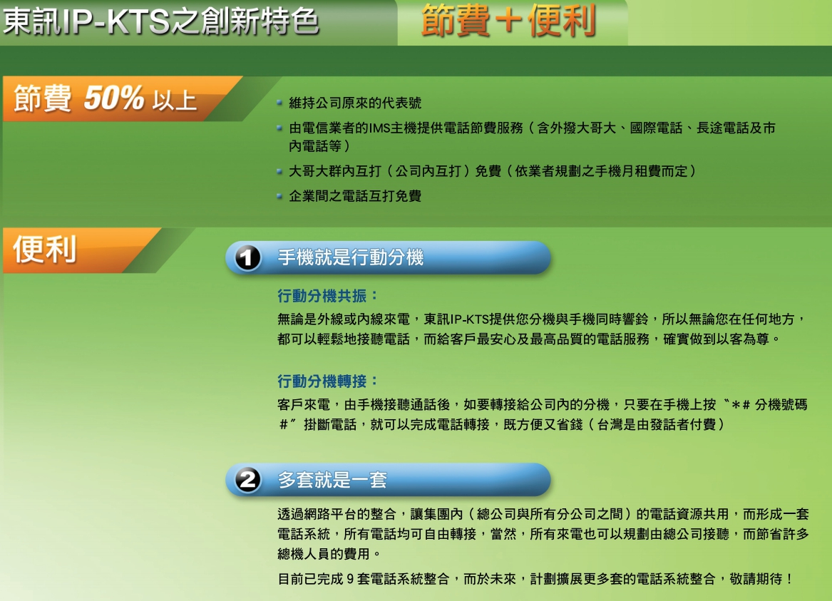 IP-SD/DX50主機兼具數位按鍵電話系統與先進IP網路交換機功能,東訊IP-KTS是整合固網、行動及影像通話最具經濟效益的IP融合式總機系統,企業可簡便快速汰換現有老舊交換機,無痛升級到IP網路總機,有效節省企業電話費用。