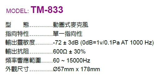 有線麥克風-->TM-833商品查詢代碼:QK50314