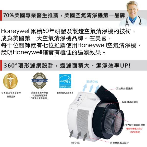 在美國,每七位醫師就有一位推薦使用Honeywell空氣清淨機,說明Honeywell確實有極佳的過濾效果。