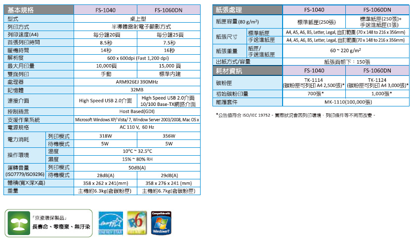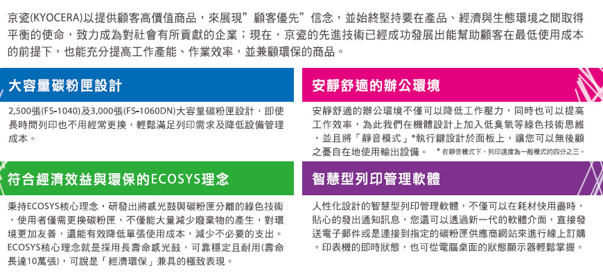 黑白雷射印表機-->FS-1040商品查詢代碼:QK53274