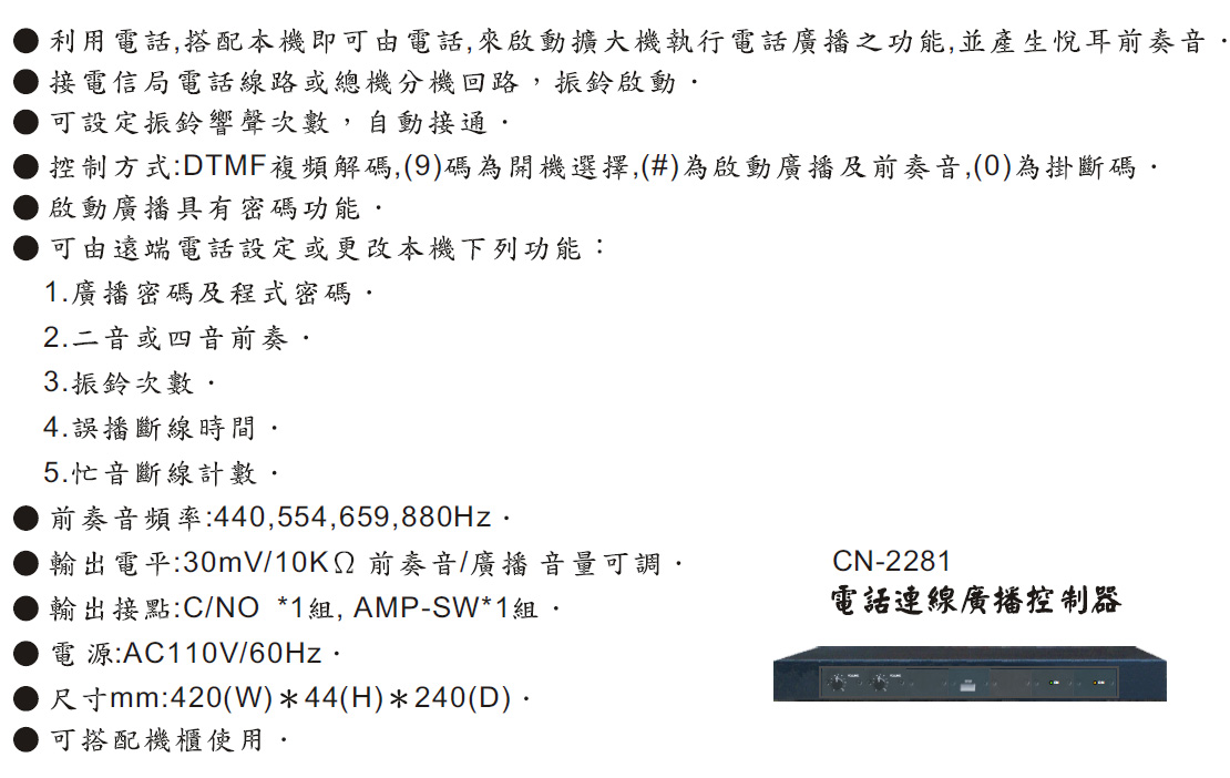 CN-2281電話連線廣播控制器 (訂製品) @@外線專用@@可手機電話聯線啟動廣播 by oder 3~7天全台最低價0910090333