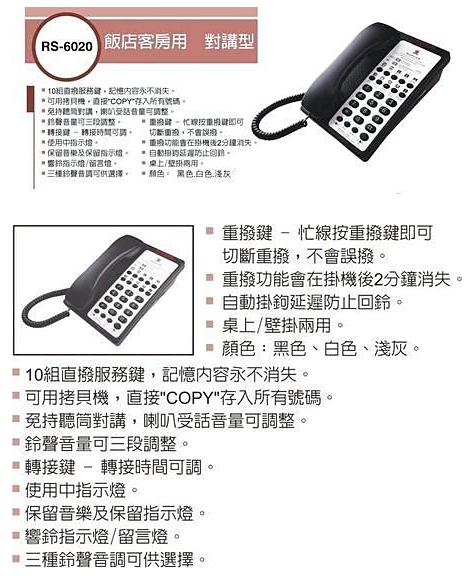 電子交換機話機-->RS-6020淺灰色商品查詢代碼:QK56688