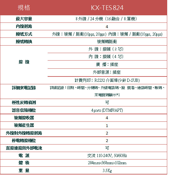 國際牌TES-824融合式主機(實裝3外線8內線) / 1台