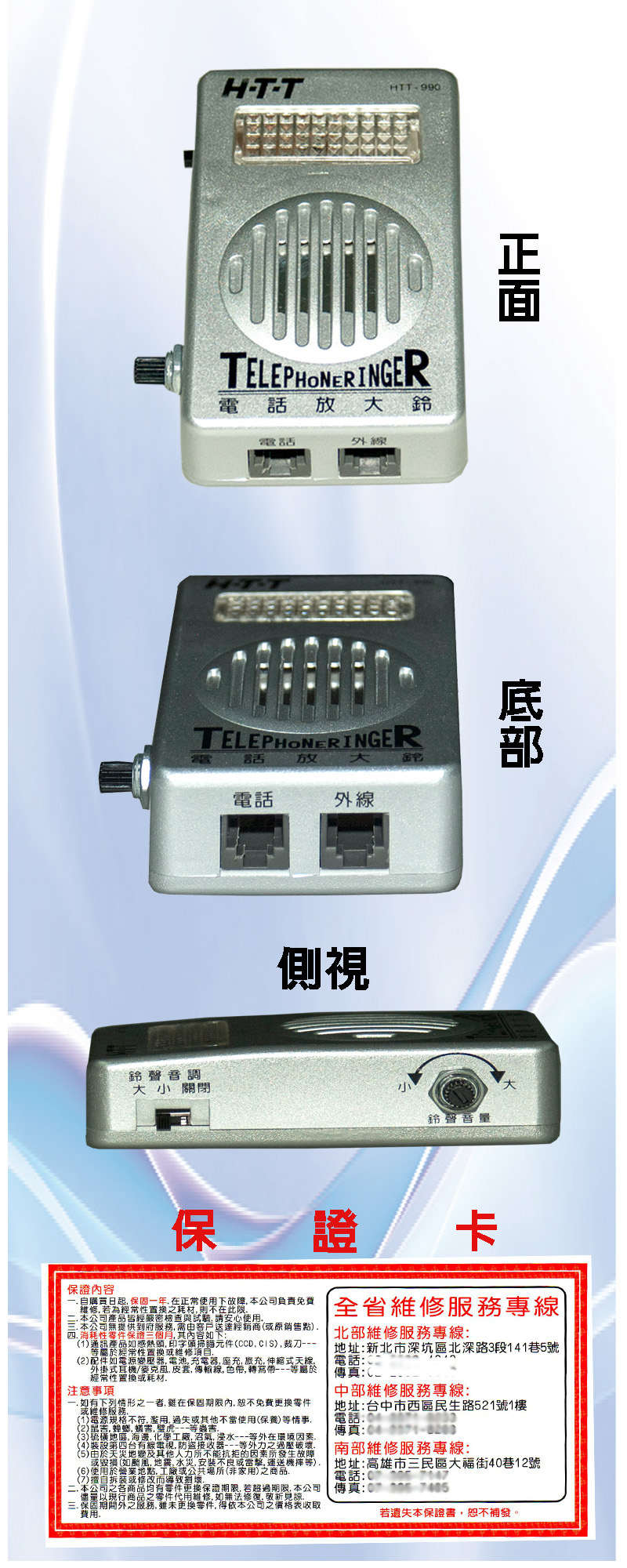 通信配件-->HTT-990 電話放大鈴 來電閃光輔助鈴商品查詢代碼:QK57162