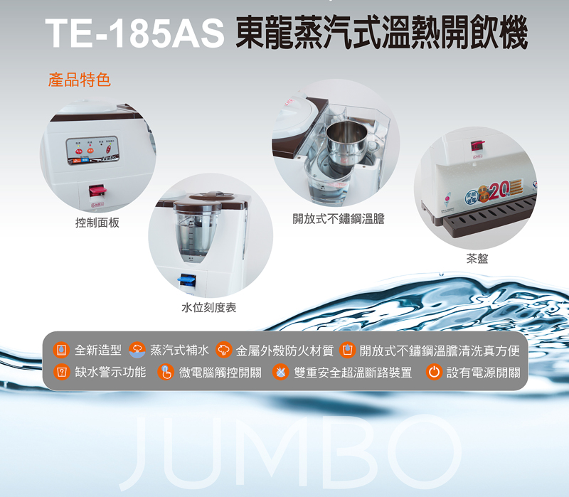 型號:東龍蒸汽式溫熱開飲機TE-185AS