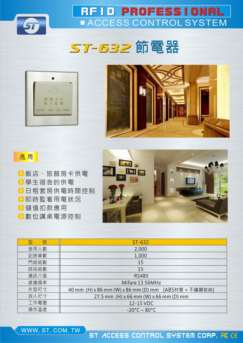 專案限量ST-632MF 飯店、旅館房卡供電 即時監看用電狀況