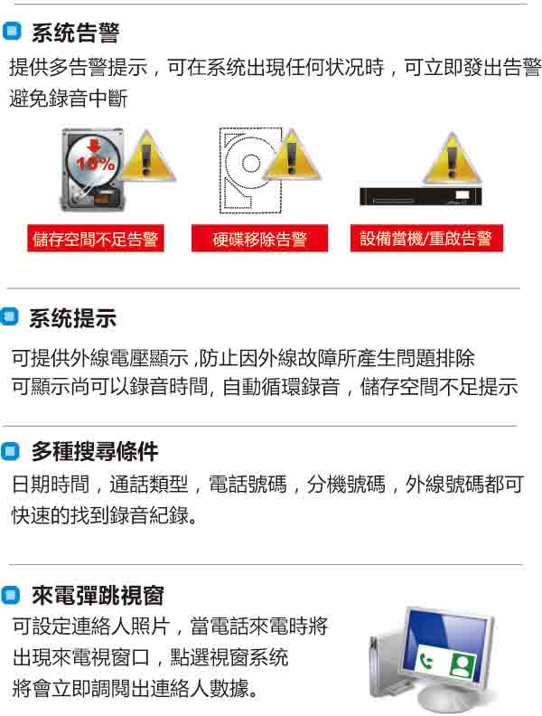 聲音重播:本機搜詢(限DAR-8000LS/LH);SD卡轉存電腦