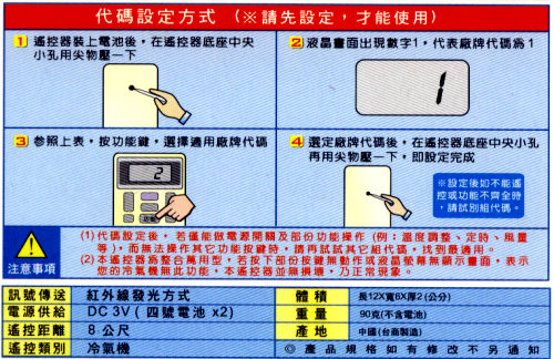 長時間不使用電池時,請取下電池, 以防漏液,損害遙控器